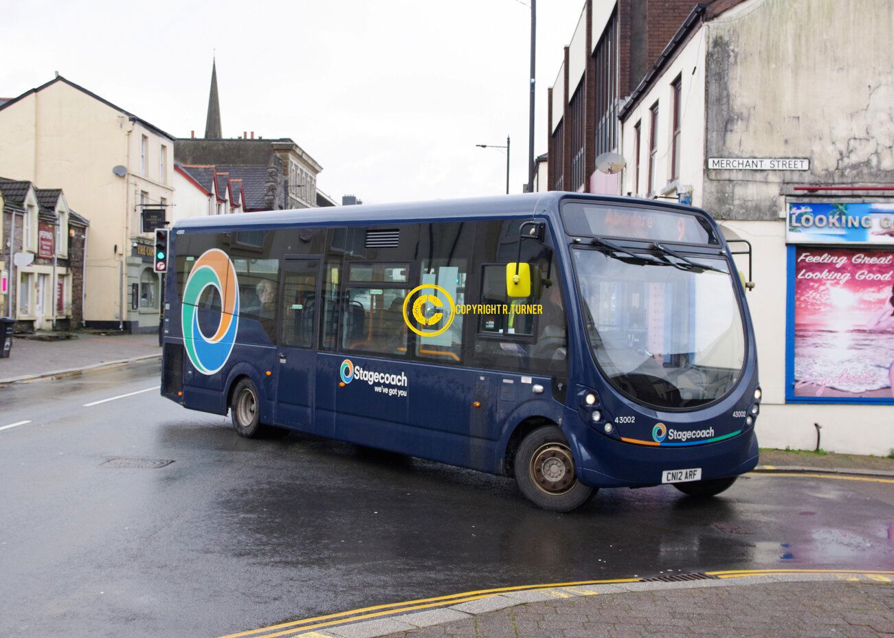 Richards currently operate a couple of these MCV Evoras bodied Volvo B8RLEs with 2 currently in TrawsCymru livery for use on the T5/T11 services. For the companies anniversary they have purchased another Volvo/MCV but this time has designed a new fleet livery which will overtime replace the current scheme used. It is seen operating its normal route between Carmarthen & Cardigan. Carmarthen Bus Station - 2024.
