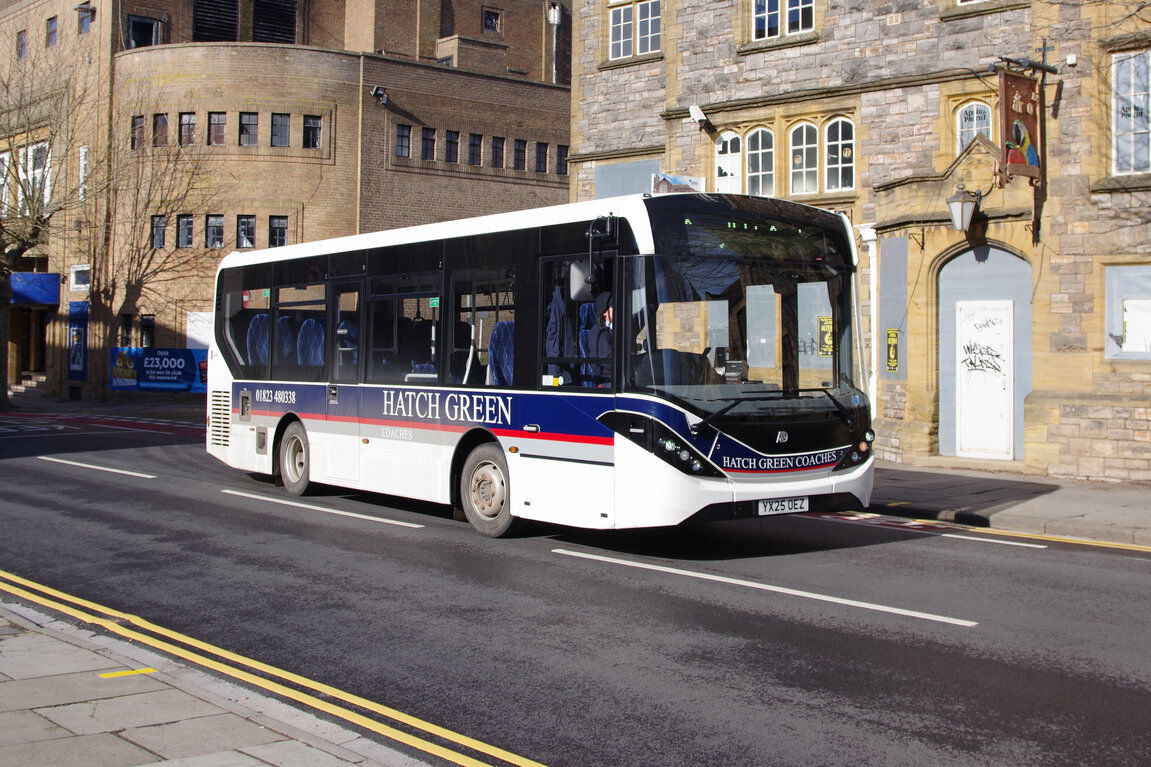 From the 1st September 25 Yeomans have won a number of Hereford tenders previously operated by their Lugg Valley subsidiary. Due to problems the Lugg Valley operation has now been closed and all operations are now operated by Yeomans. Yeomans have purchased 4 new ADL Enviro 200mmc buses for use of the new tenders and all are operating in dealer white at present. One is seen at Hereford Railway Station before starting a journey on the 492 service to Ludlow. Hereford Railway Station - 2025.