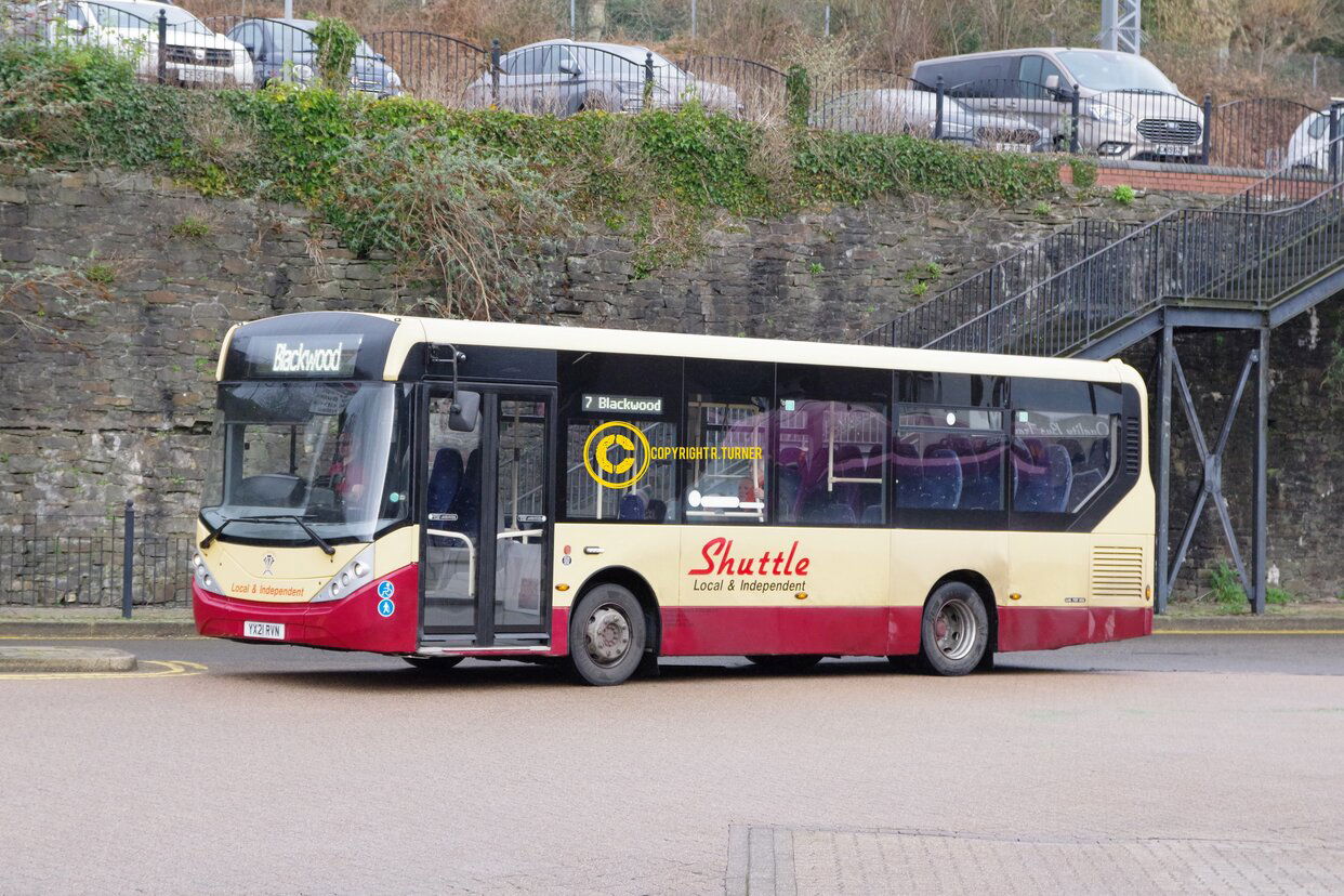 The company has added to its fleet of MCV Evora bodied Volvo B8RLEs with two of the new short versions. These have primarily replaced the last two ADL Enviro 200mmcs on the market day services. One is seen arriving at Abergavenny on an X12 service from Builth Wells. Abergavenny Bus Station - 2022.