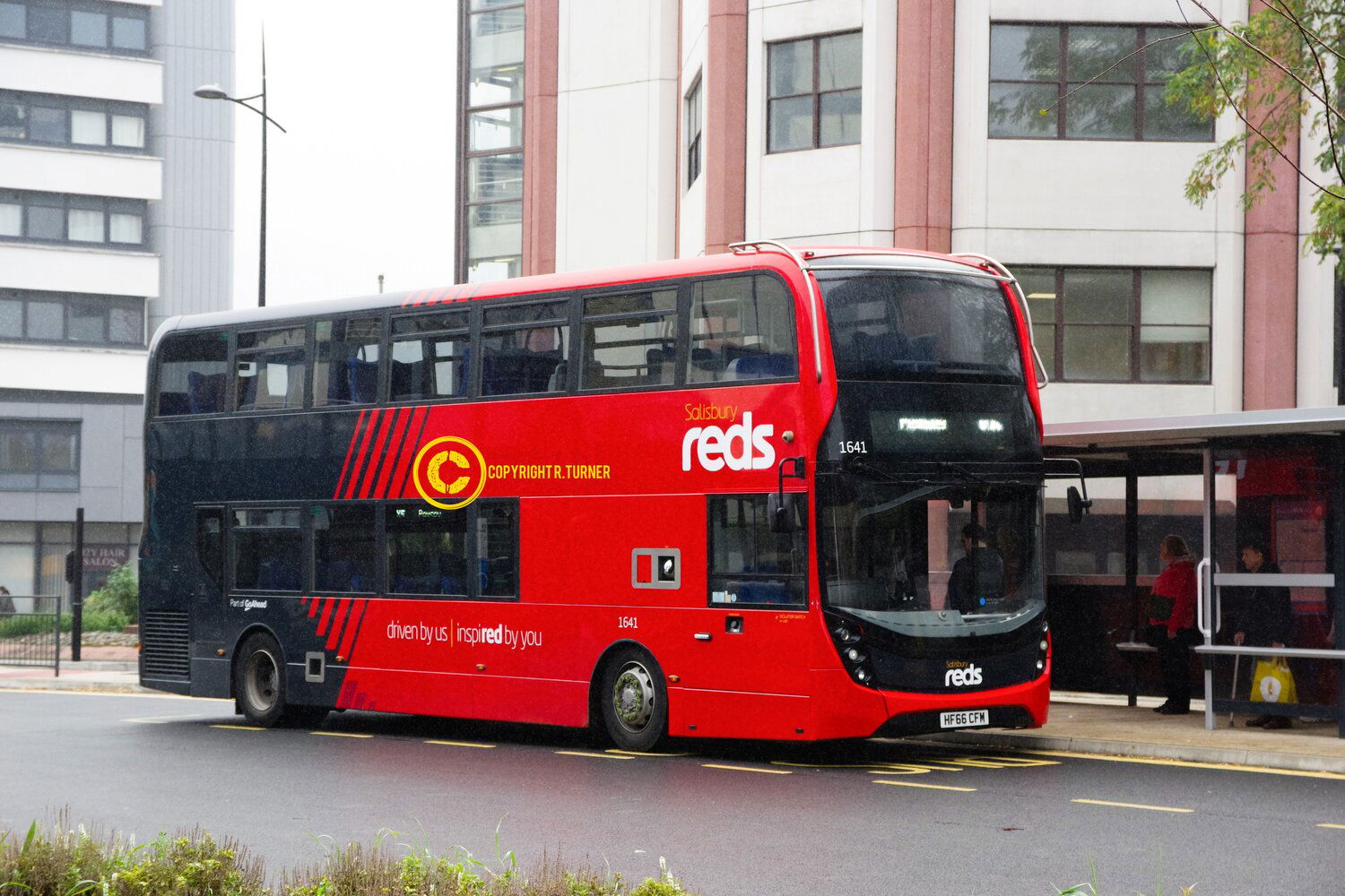 The mainstay of the double deck fleet is the integral ADL Enviro 400 which are mainly seen operating the frequent city service r1 and the out of town X routes. One of the newest examples is seen in the City Centre operating the X5 to Pewsey. Salisbury City Centre - 2022.